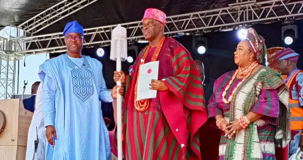Governor Seyi Makinde of Oyo State officially installed Oba Ghandi Olaoye as the 21st Soun of Ogbomoso during a ceremony at Ogbomoso Township Stadium on 19th of December 2023.